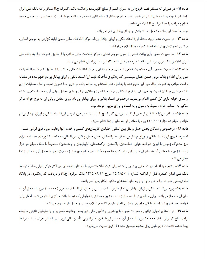 دستورالعمل اجرایی ضوابط ناظر بر ارز، اسناد بانکی و اوراق بهادار همراه مسافر